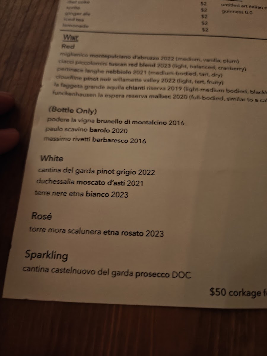 To start off your meal, don't miss the Meat and Cheese Plate, featuring a delicious array of San Daniele prosciutto, rosemary ham, Italian dry salami, and delectable cheeses like truffle moliterno and fiore dolce. It's a generous portion that gives you a taste of various Italian flavors, perfect for sharing—or not! For salad lovers, the Apple Salad and Arugula Salad offer refreshing bites that are both tasty and beautifully presented.